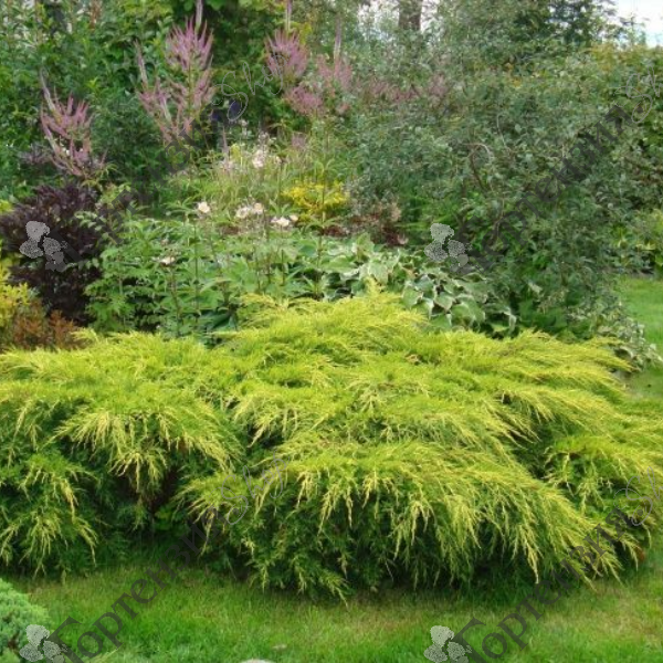 Можжевельник 'Голд Кост' - компактный раскидистый хвойный кустарник с изящной будто позолоченной кроной . Высота растения до 1 м и до 2 м в диаметре. Побеги растут горизонтально. Хвоя чешуйчатая или игловидная, на верхушках побегов золотисто-желтая, зимой становится темнее. В тени теряет ярую окраску, поэтому рекомендуется высаживать на солнечных местах. Солнцелюбив. Морозостоек.