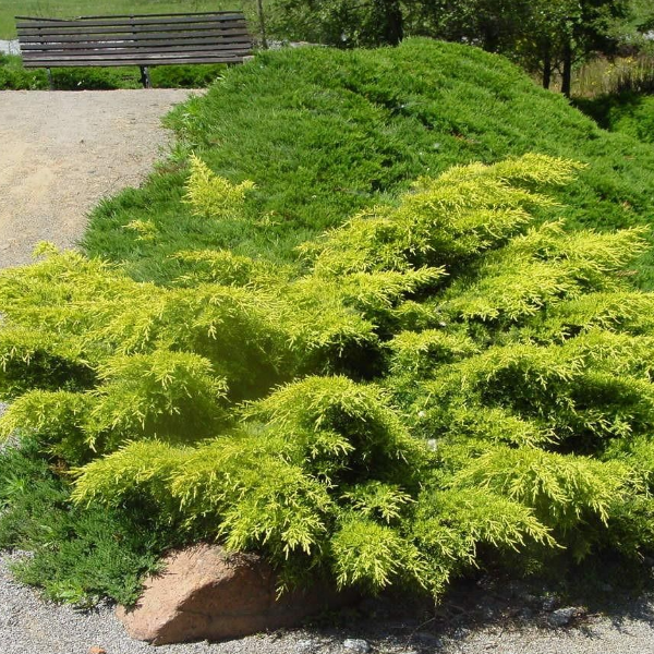 Можжевельник средний "Голд Стар" - низкорослый вечнозеленый кустарник с хвоей лимонных и золотистых оттенков. Крона раскидистая, компактная с горизонтальными побегами. Ежегодный прирост составляет около 8 см, Высотой вырастает до 1,0 см и шириной 2,5 м. В возрасте 10 лет кустарник достигает примерно 70 см в высоту и около 150 м в ширину.Предпочитает солнечные места.К почве и влаге нетребователен.Морозостойкий.