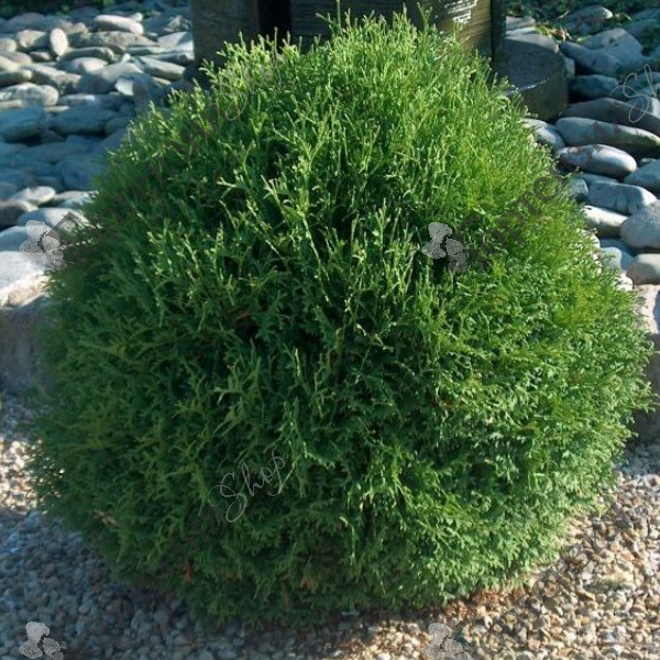 Туя западная 'Тини Тим'-  медленно растущий, карликовый вечнозеленый кустарник с шаровидной, тонко разветвленной кроной.  К 10-ти годам высота до 50 см, диаметр кроны до 60 см. Диаметр взрослого растения до 1.5 м, высота 1 м. Светолюбива. К почвам нетребовательна, но предпочитает свежие, достаточно увлажненные плодородные суглинки. Морозостойка. Применение: одиночные посадки, группы, на каменистых горках.