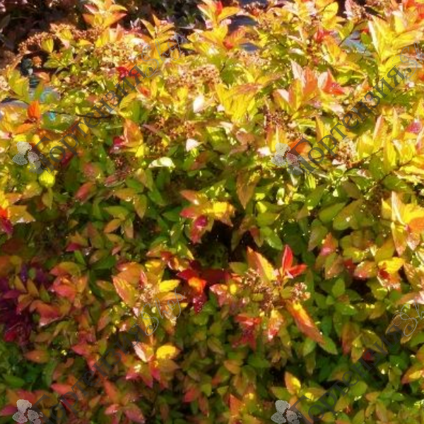 Спирея японская Мэджик Карпет, Spiraea japonica ''Magic Carpet' - компактный  кустарник высотой до 0,4 м с плотной густой округлой кроной. Листья при распускании оранжево-красные, затем становятся лимонно-жёлтыми. Молодая листва обладает яркой окраской в течение всего сезона. Цветки тёмно-розовые. Цветение июнь-август.
