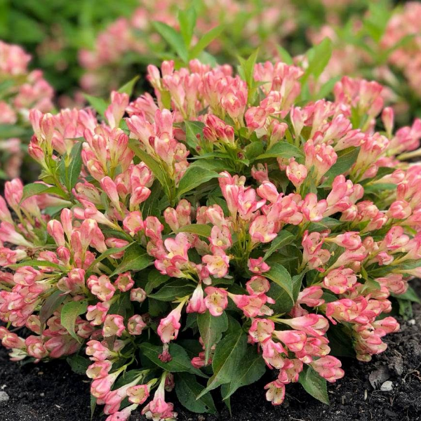 Вейгела цветущая "All Summer Peach" (Олл Саммер Пич) - карликовый сорт,с подушковидной формой кроны, высотой до 40 см и шириной 70 см. Растёт быстро. Цветки воронковидные, кремовые со светлым абрикосовым оттенком. Цветение в мае-июне, затем с середины июля до сентября. Место солнечное или полутенистое. Почва плодородная.Морозостойка.
